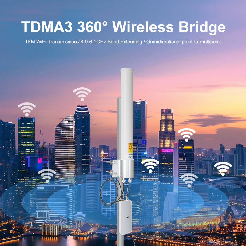Antenna omnidirezionale 13dBi: Fornisce un'ampia area di copertura fino a 3 chilometri, ideale per la comunicazione senza fili a lunga distanza da punto a multi-punto.