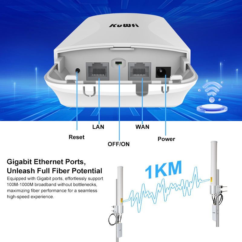 Bridge Wifi KuWFi da Esterno a Lungo Raggio 900Mbps 5.8G, Antenna Omnidirezionale Impermeabile a 360°, Punto-Multipunto TDMA