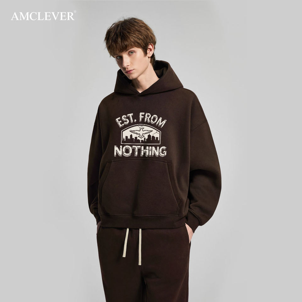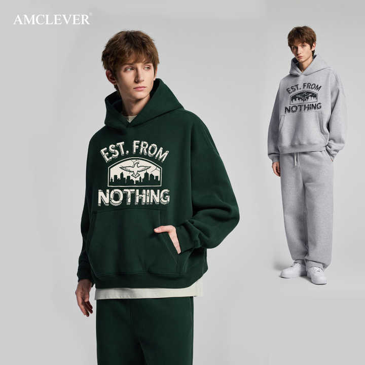 360GSM Heavyweight Hoodie "Est. From Nothing" Tech Pack Support Custom Brand Storytelling Men's Oversized Puff Print Hoodie