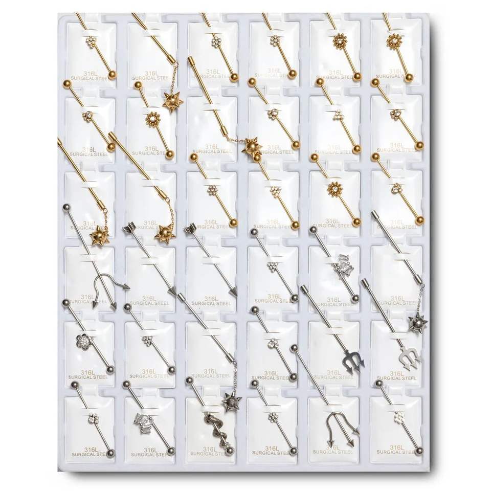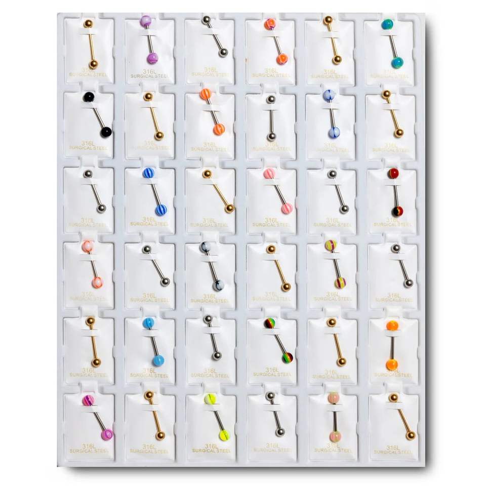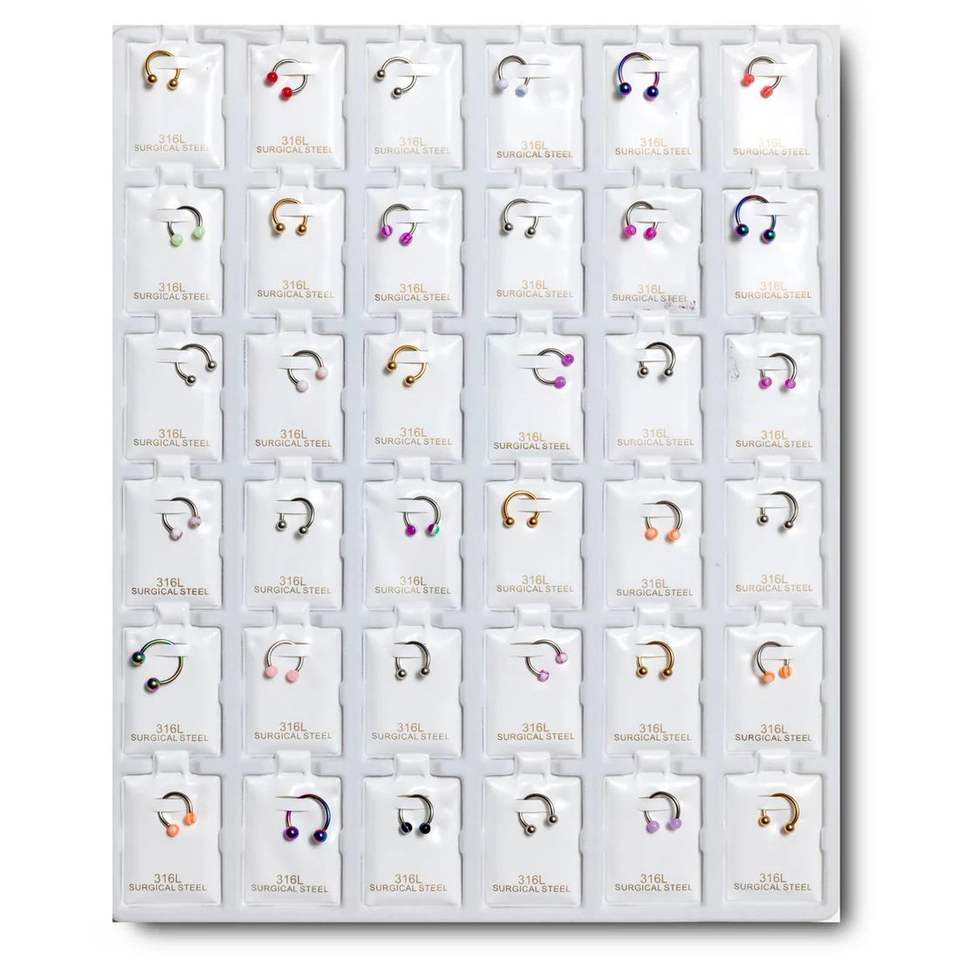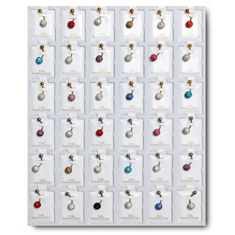 Set di 36 Gioielli per Piercing all'Ombelico in Stili Misti per Donne, Anelli Colorati in Acrilico per Ombelico, Mento, Sopracciglia e Lingua in Acciaio con Espositore
