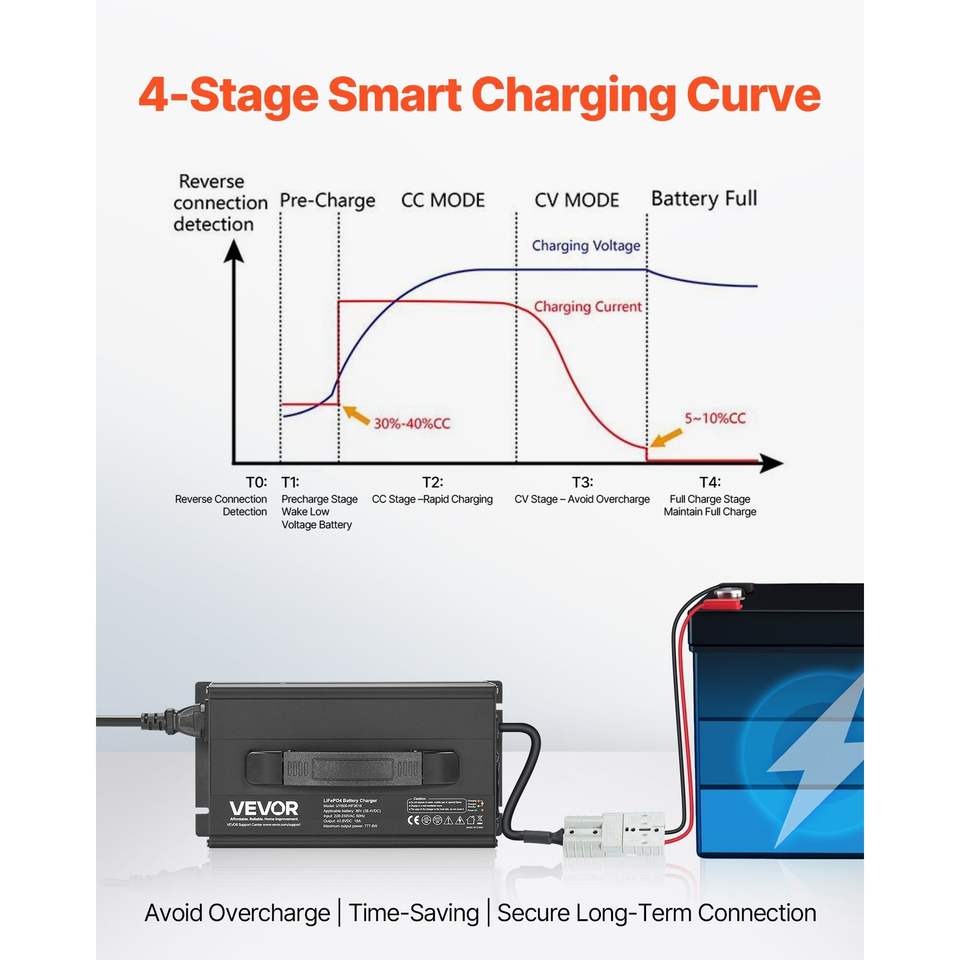 Caricabatterie Smart LiFePO4 36V 18A AC-DC 43.8V con Connettore Anderson, Indicatore LED, Attivazione a 0V, Caricabatterie Smart al Litio