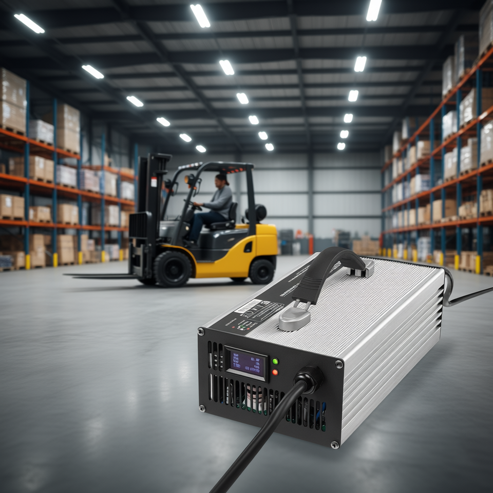 Caricabatterie per carrelli elevatori 36V 30A intelligente automatico con display OLED e ventola di raffreddamento per uso industriale