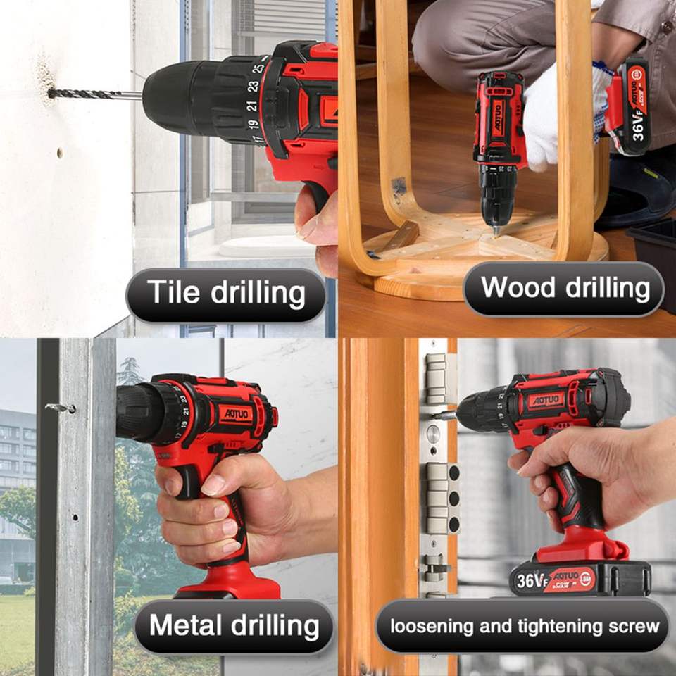 36V Electric Cordless Drill Power Screwdriver with 2-Speed Lithium-Ion Battery Mini Multi-function Rechargeable Screwdriver