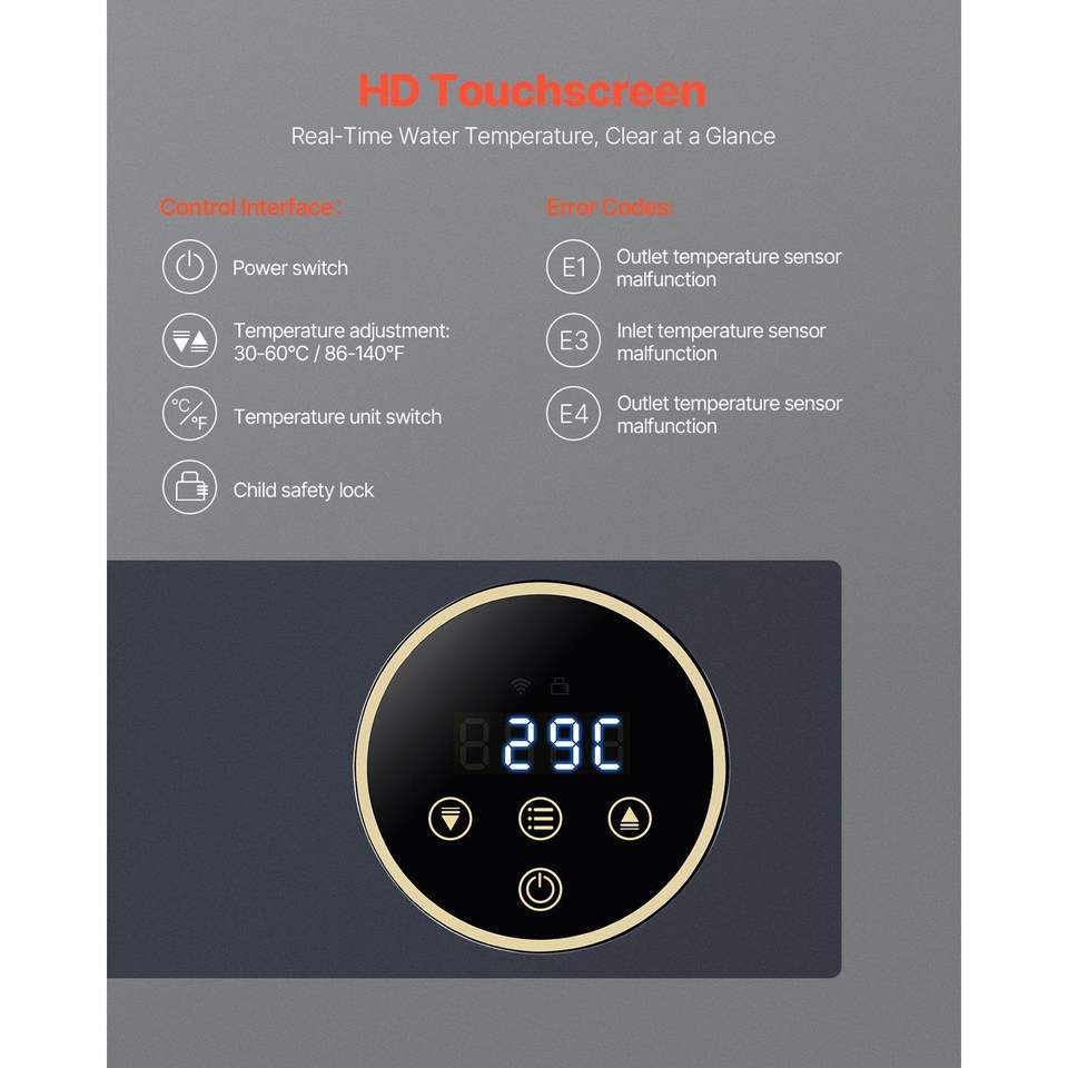 36kW alloggiamento in plastica a parete Tankless Touch scaldabagno elettrico istantaneo con blocco per bambini acqua calda su richiesta