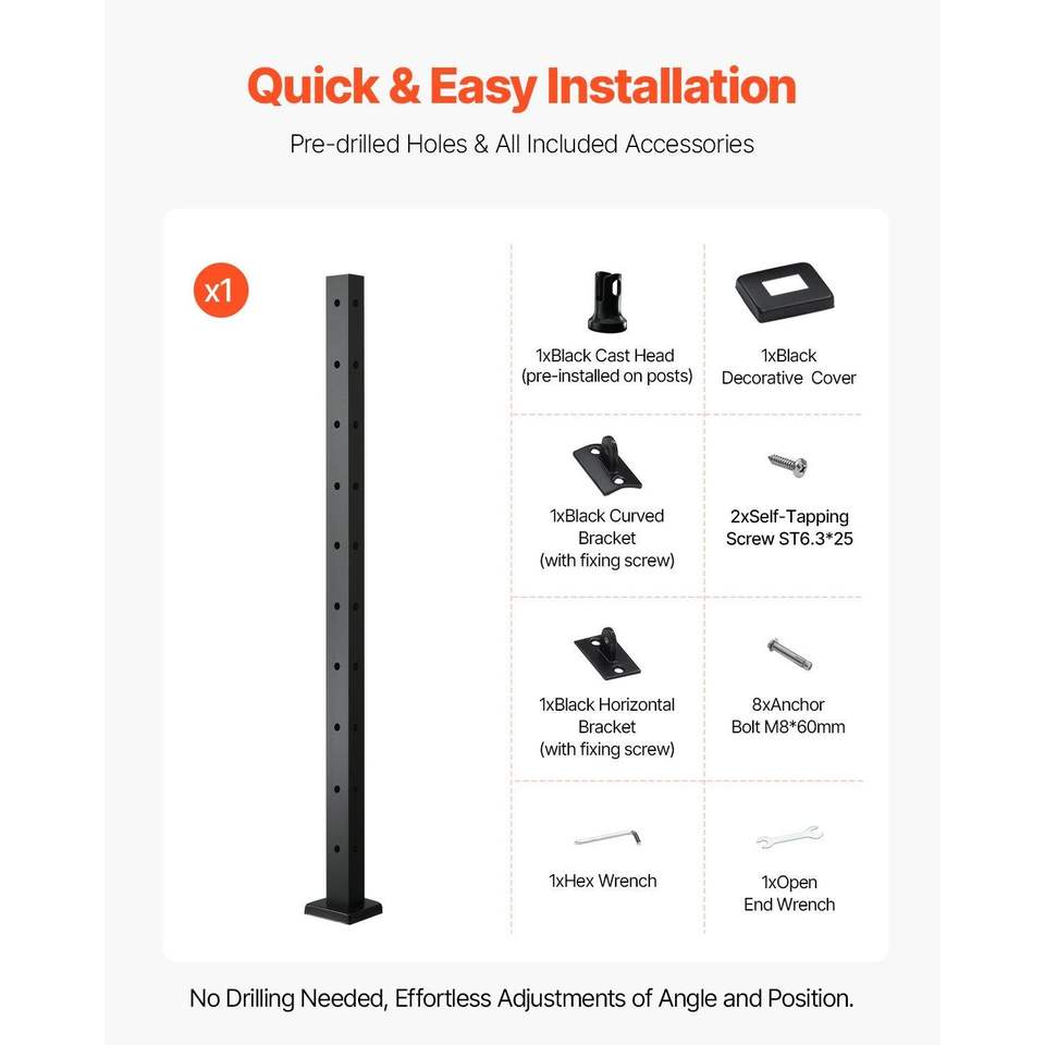 Palo per Ringhiera Angolare in Acciaio Inox 36x1x2 Pollici con Fori Pre-Forati a L per Scale