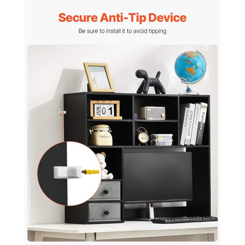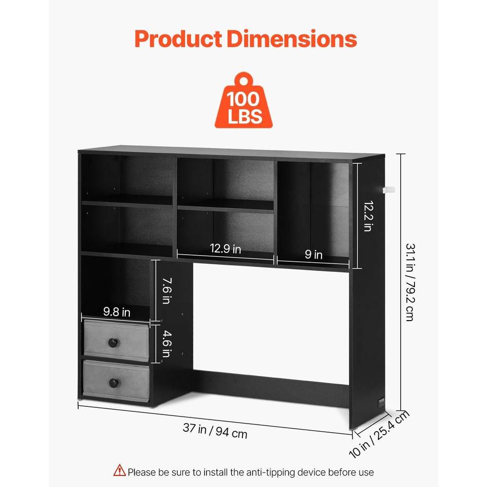 Organizzatore da Scrivania in Legno 94x25x79 cm, Libreria a 3 Ripiani con Cassetto per Ufficio, Espositore per Libri Leggibili per Casa
