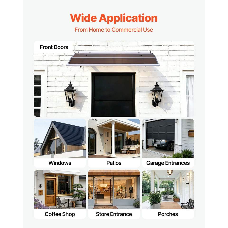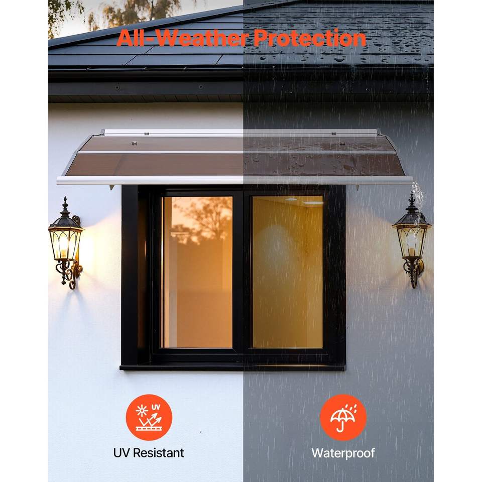 37 X 47 in Exterior Front Door Window Awnings ABS Bracket Sun Shelter for Rain Snow Sun Protection Awnings for Door Entrance