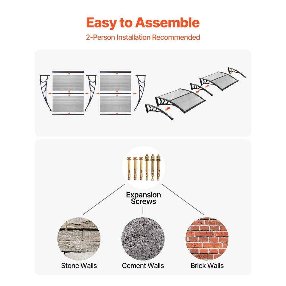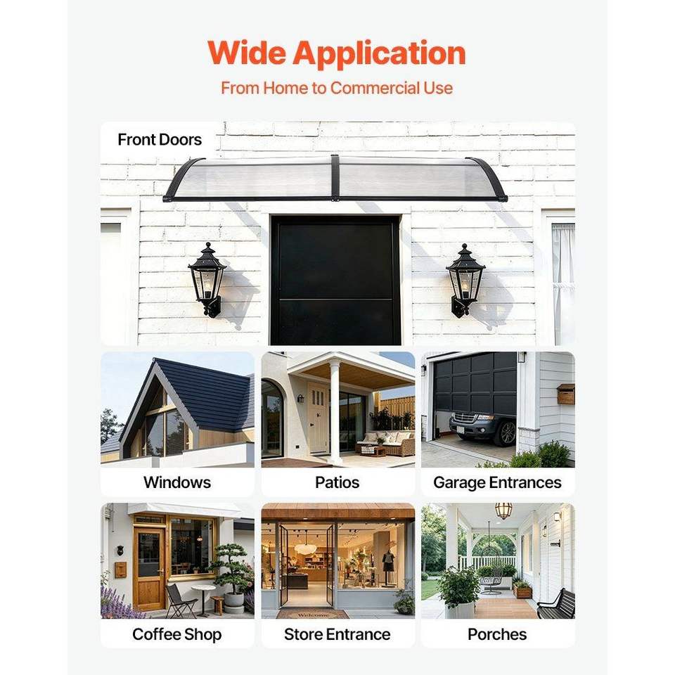 38 X 78 in Exterior Front Door Window Awnings ABS Bracket for Rain Snow Sun Protection Door Entrance Awnings Drainage Features