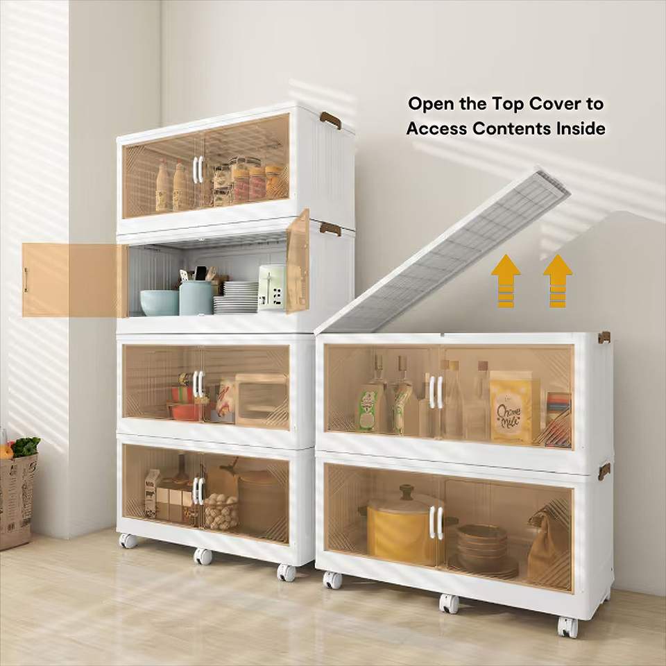 Scatola portaoggetti pieghevole trasparente da 383 QT, 25,6 pollici di larghezza, a 4 livelli, grande capacità, organizer portatile per armadio, facile accesso, salvaspazio