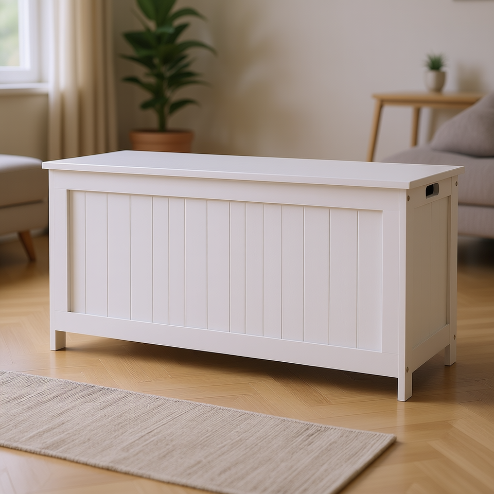 White Wooden Storage Bench 39.4 In With Safety Hinges Side Handles For Living Room Furniture Scandinavian Modern Design
