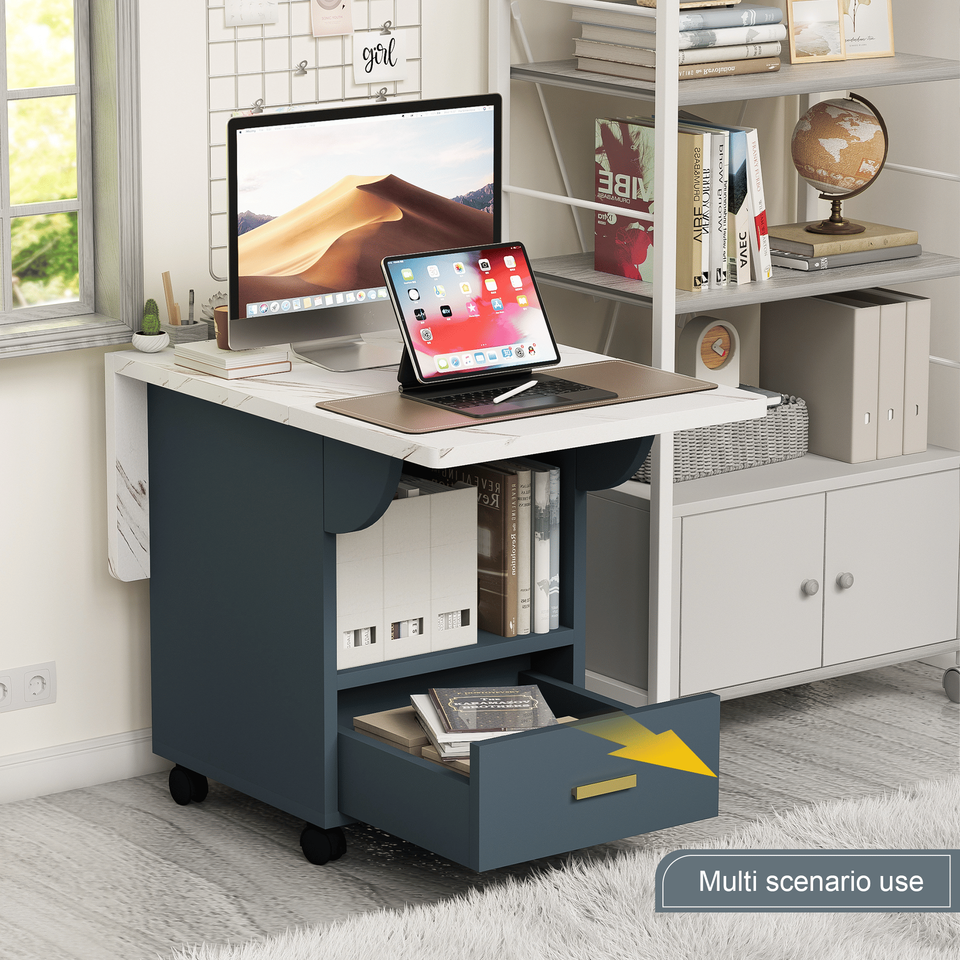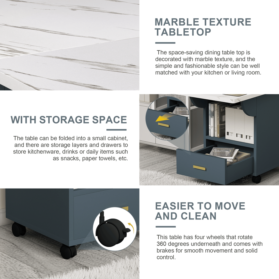 Tavolo da Pranzo Pieghevole in Legno da 100 cm con 4 Ruote, Tavolino Portatile per Casa, Cucina e Carrelli