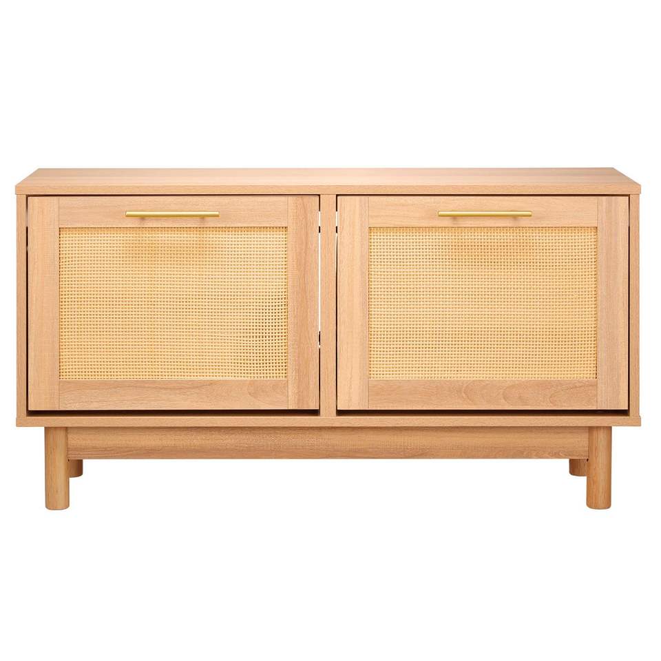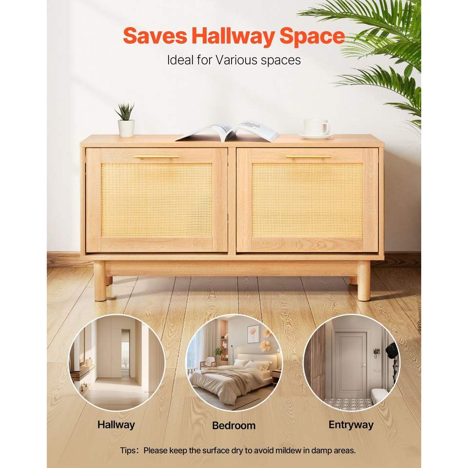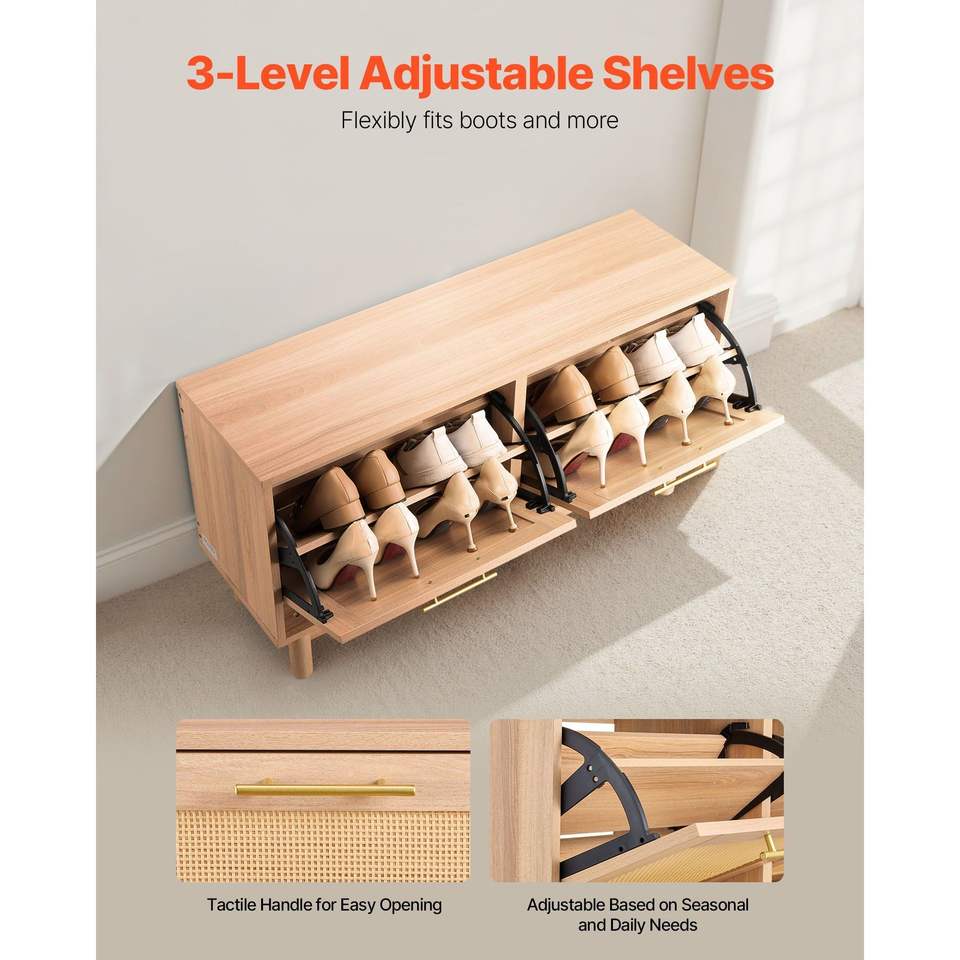 Panca Portascarpe Effetto Rattan 100x30x53 cm con 2 Cassetti Ribaltabili e 4 Scomparti, Capacità 136 kg
