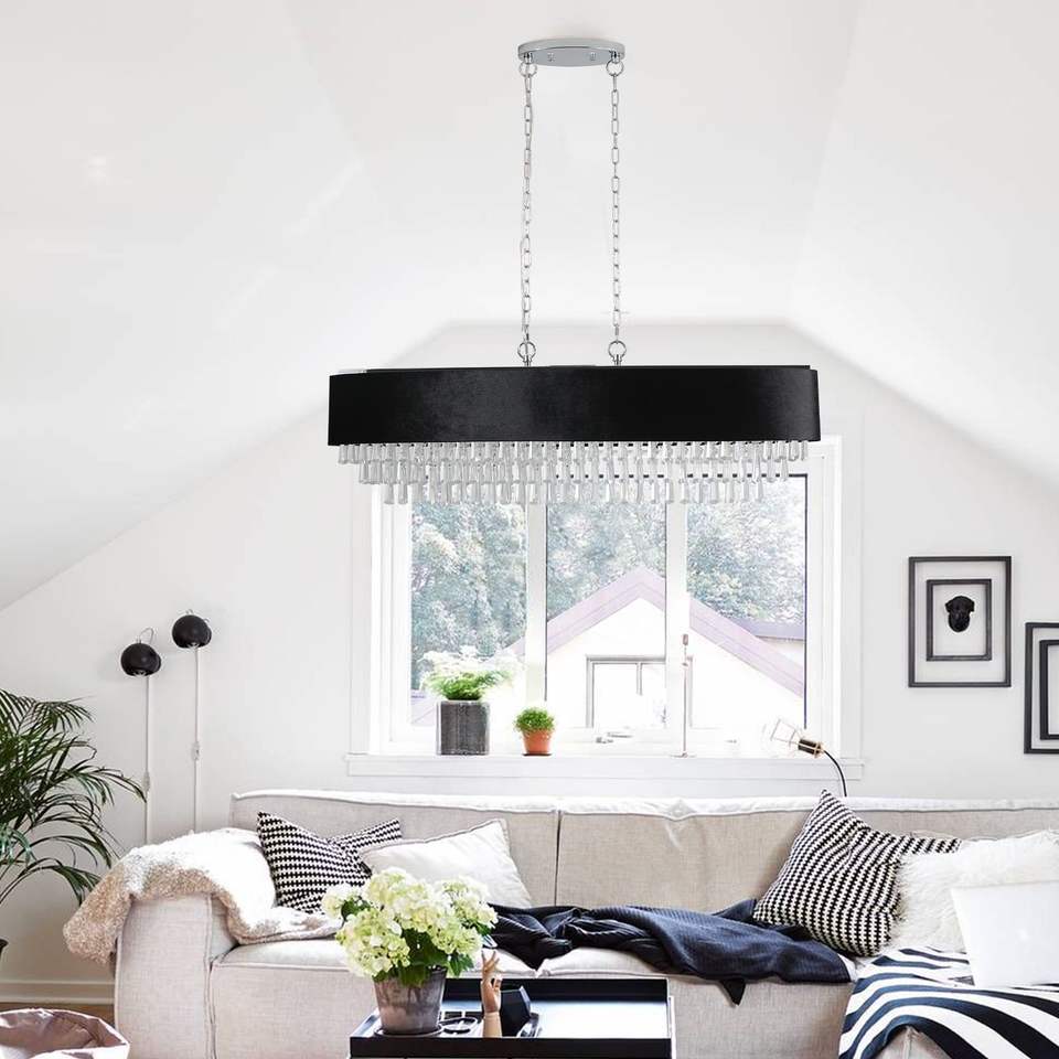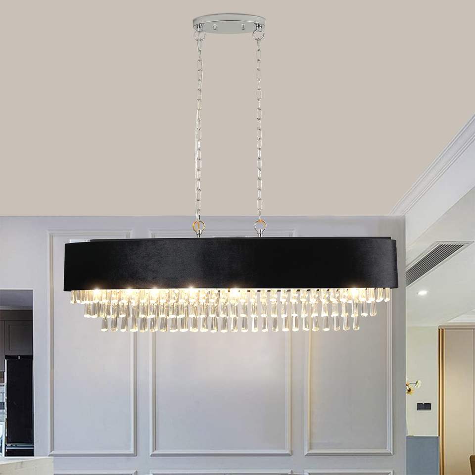 Lampadario Moderno in Cristallo da 39 Pollici con 8 Luci G9, Altezza Regolabile, Paralume Nero in Velluto Imitazione Anti-Riflesso per Sala da Pranzo