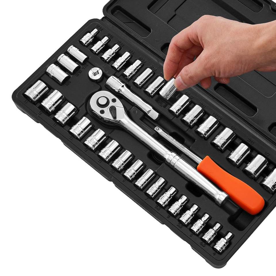 39-Piece 3/8 1/4 Inch Drive Socket Ratchet Set SAE Metric Size Mechanic Tool Kit with Ratchet Wrench for Professional Use
