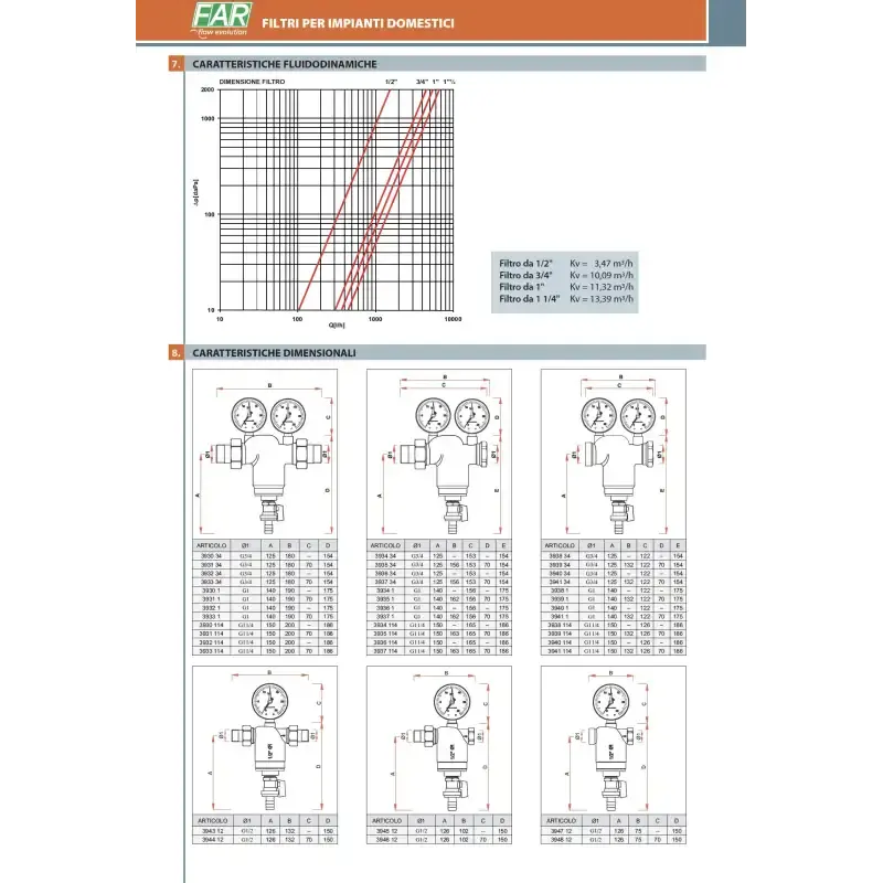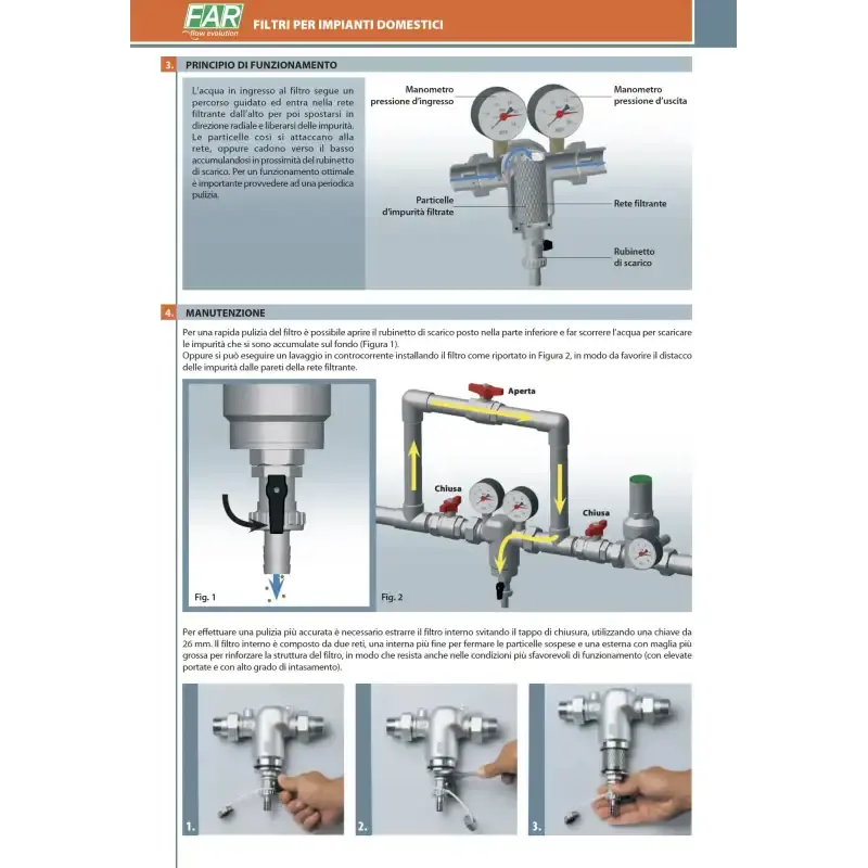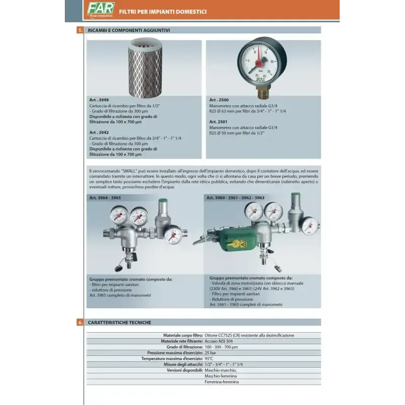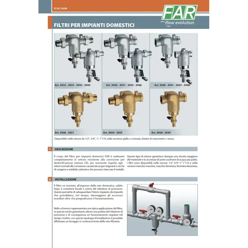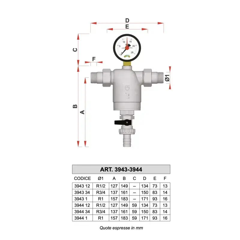 Filtro per Sistema Far 3943 ad Alto Flusso da 1/2 Pollice in Acciaio Inossidabile Cromato con Connessioni Maschio-Maschio e Manometro