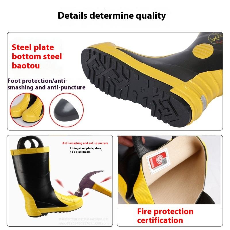 Stivali antincendio antiscivolo antiscivolo in gomma antiscivolo antiscivolo certificati 3C scarpe da combattimento in alta punta di sicurezza