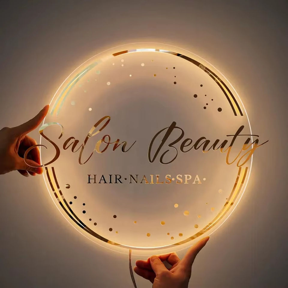 Insegna Logo 3D Retroilluminata in Acrilico Dorato Personalizzata per Boutique, Salone di Bellezza, Spa, Studio di Parrucchiere, Reception