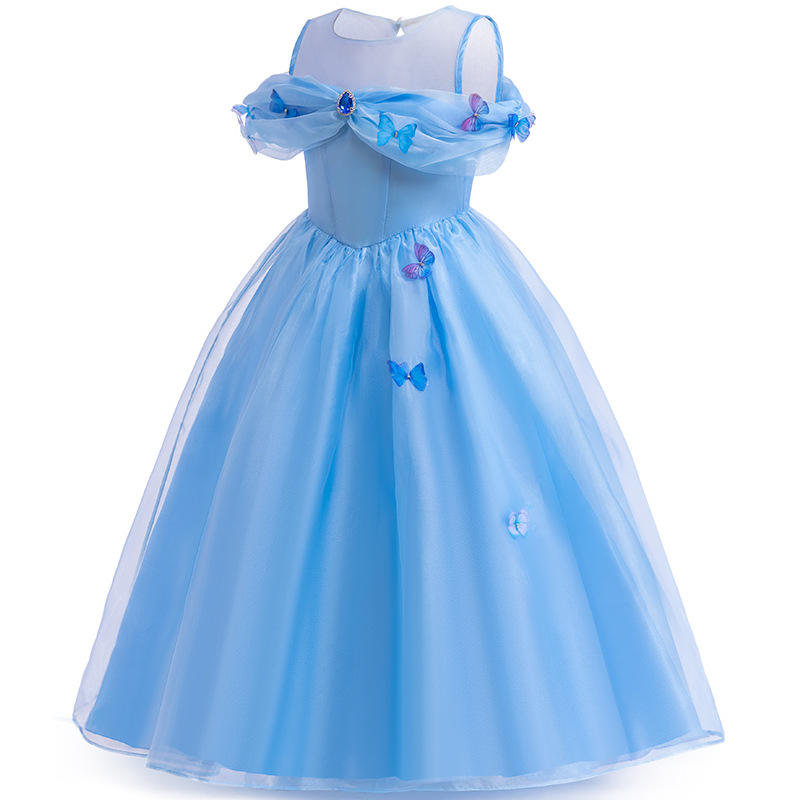 3D Blue Butterfly Princess Cindy Costume for Girls Long Fancy Carnival Birthday Party Dress Cosplay Suit for Christmas Holiday