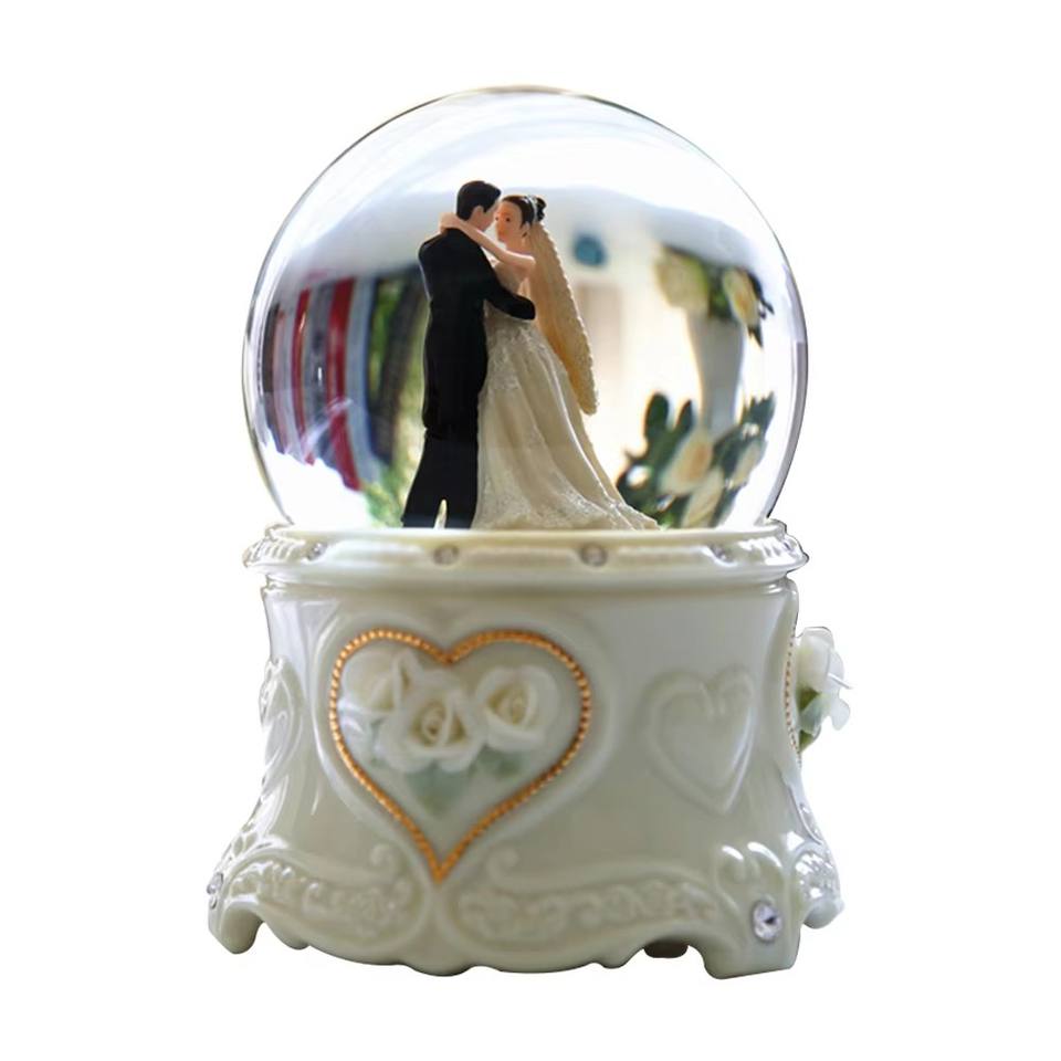 3D sfera di neve artigianale in resina personalizzata modello di coppia di sposini scultura scena di nozze arte Display da tavolo ornamenti Souvenir romantico