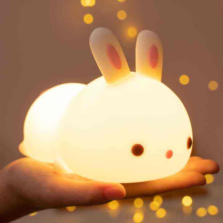 Luce Notturna 3D Simpatico Coniglio 7 Colori Controllo Touch Lampada Personalizzata in Silicone LED Decorazione per Interni Camera da Letto Illuminazione da Comodino per Bambini Giocattolo Regalo