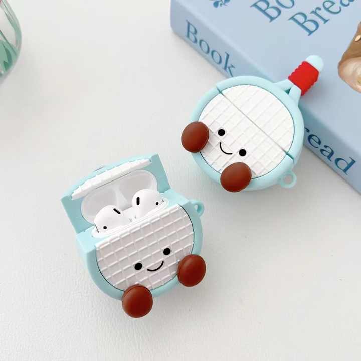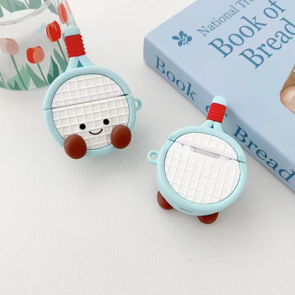 Custodia per auricolari 3D a forma di racchetta da tennis in silicone per Apple Airpods 4 Pro 2 3, cover in gomma anti-caduta a forma di bambola/cartone animato