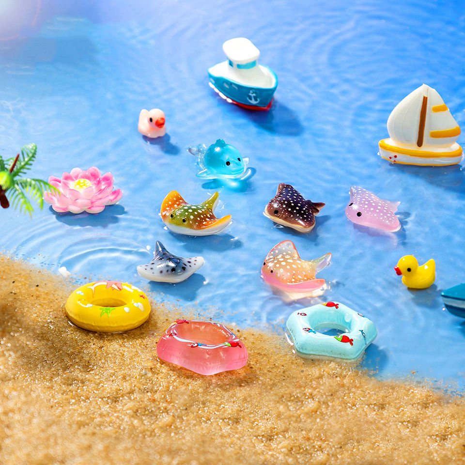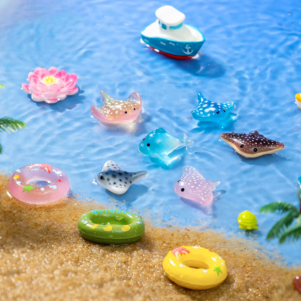 Figurine 3D Galleggianti di Animali Marini in Miniatura, Ornamenti in Resina di Manta e Pungole di Loto per Decorazione Acquario e Terrario Fai-da-Te
