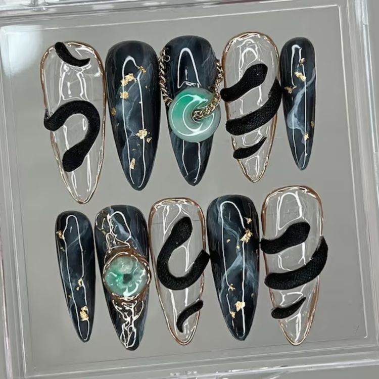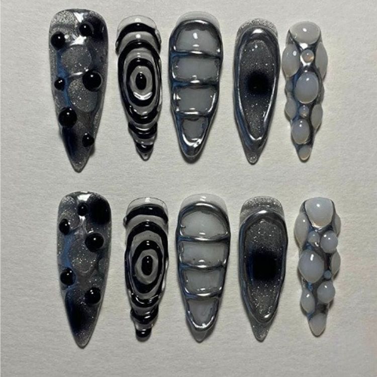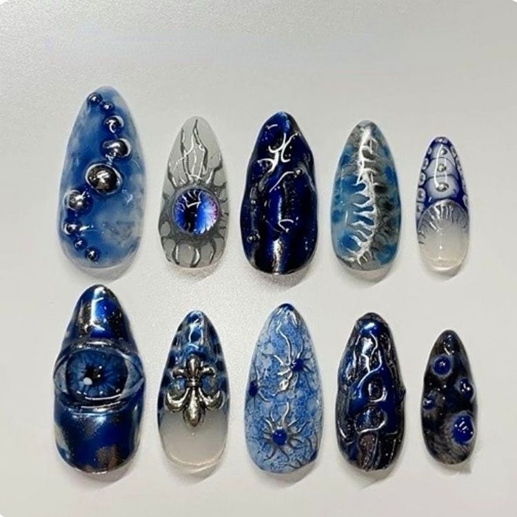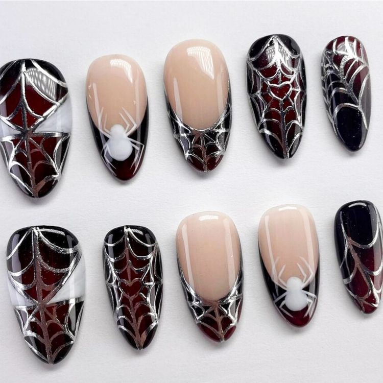 3D Halloween Press On Nail Design riutilizzabile Glitter Set di diamanti in metallo luminoso Trick Treat applicazione dito vampiro