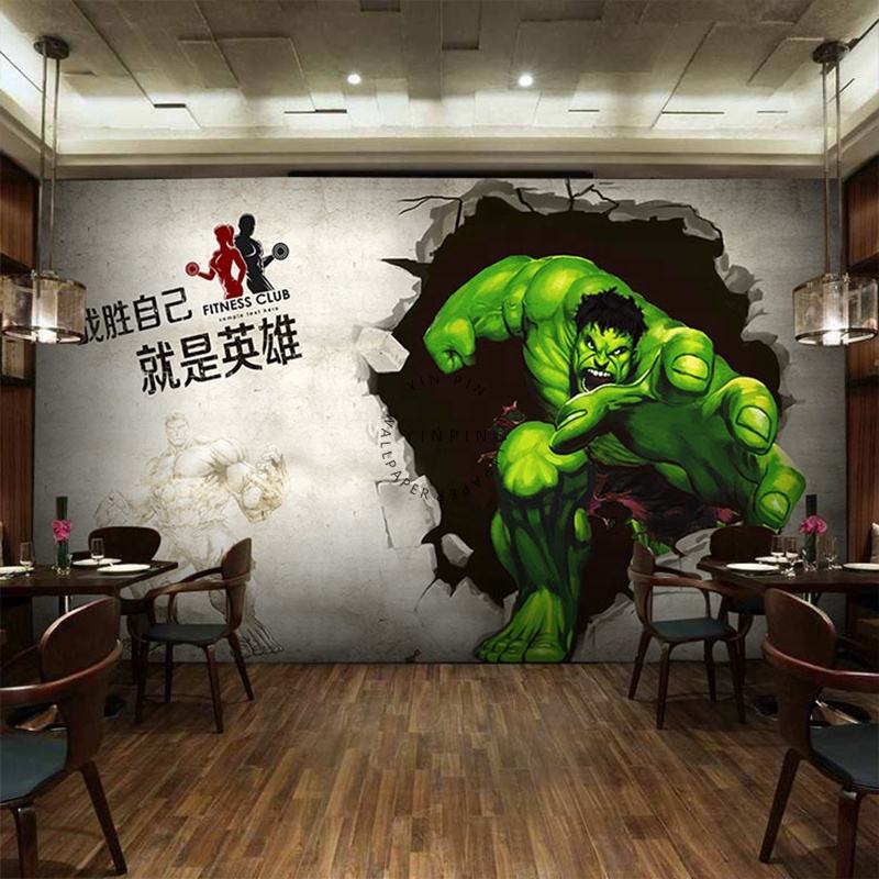 Carta da Parati Murale 3D Tema Supereroe Hulk Cartone Animato per Pareti