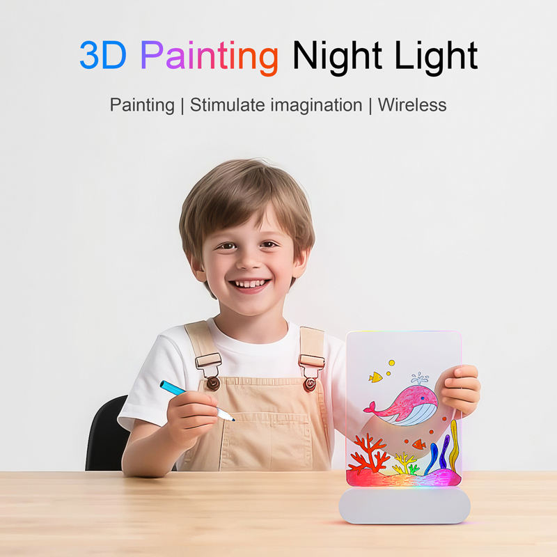 3D Led camera dei bambini comodino trasparente riutilizzabile acrilico Writing Board con lampada a Led per i bambini con il colore magico