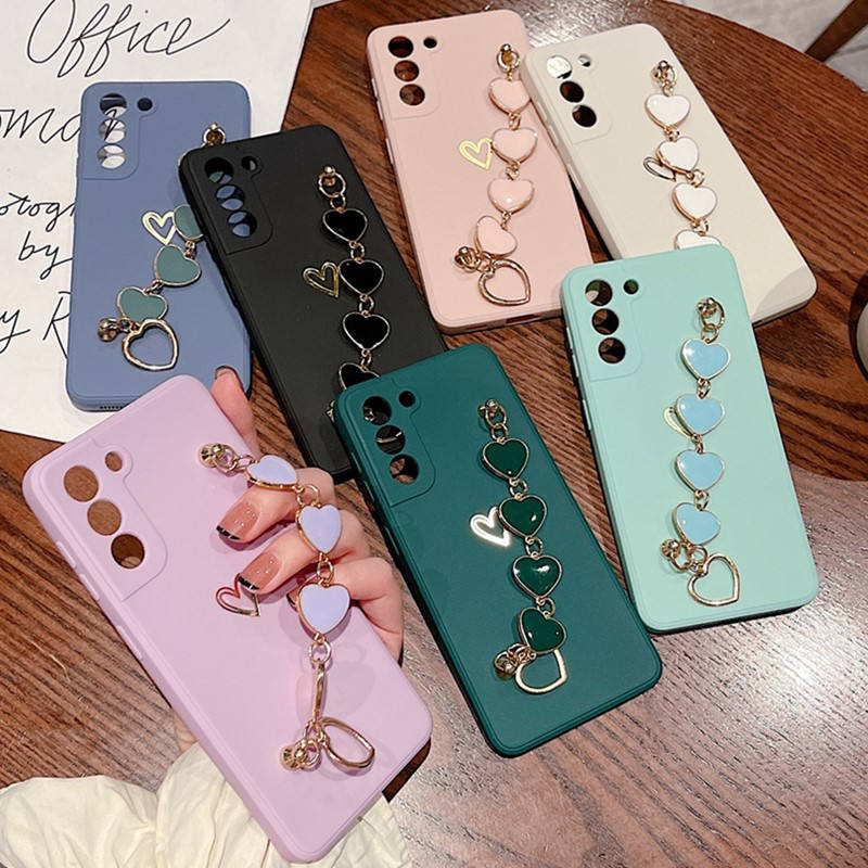 3D Love Heart Wrist Bracelet Phone Case for Samsung S23 S22 Plus Note 20 Ultra S20 FE A52 A72 A12 A42 A32 A51 A71 Silicone Cover