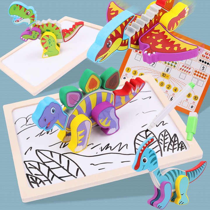 Tavola da Disegno Magnetica 3D per Bambini, Puzzle in Legno a Forma di Dinosauro, Lavagna per Graffiti Cancellabile, Giocattolo Educativo per la Prima Infanzia