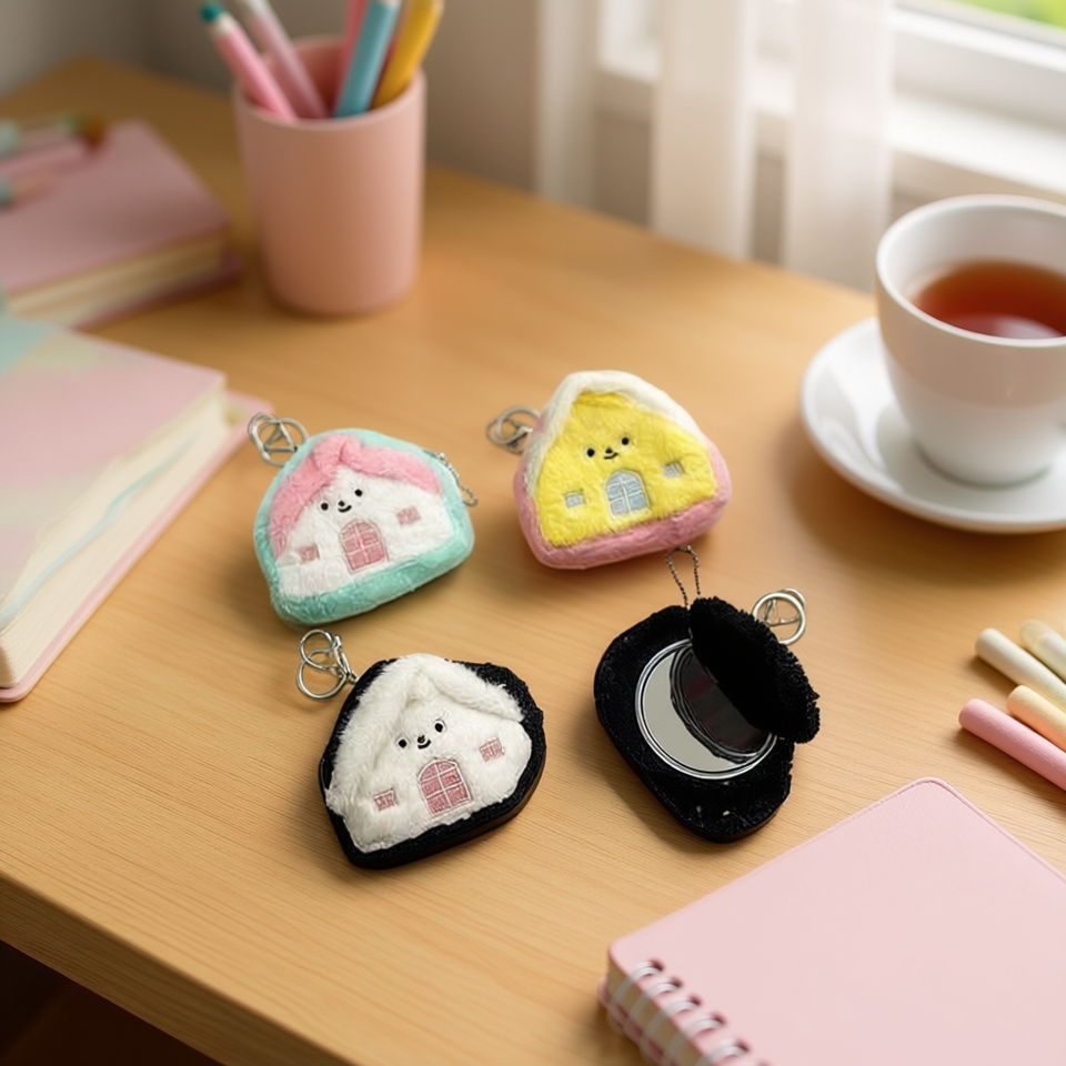 Portachiavi con specchietto a forma di casa in miniatura 3D 12x11cm con specchietto tascabile per donne e ragazze, accessorio di moda