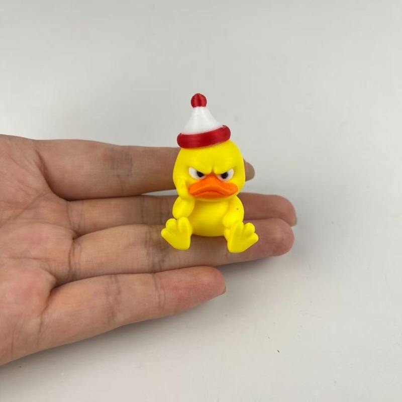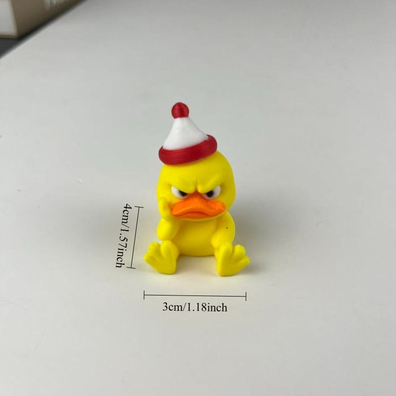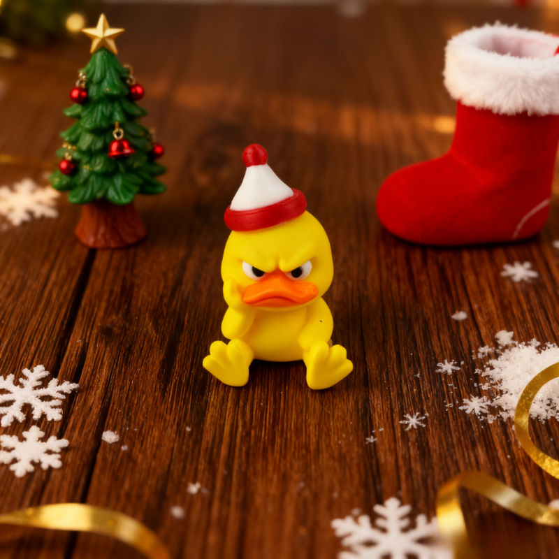Ornamento di Paperella Arrabbiata Gialla Stampato in 3D con Cappello Natalizio