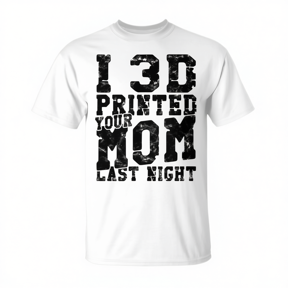 Maglietta Promozionale Stampata in 3D con la Scritta 'Your Mom Last Night'