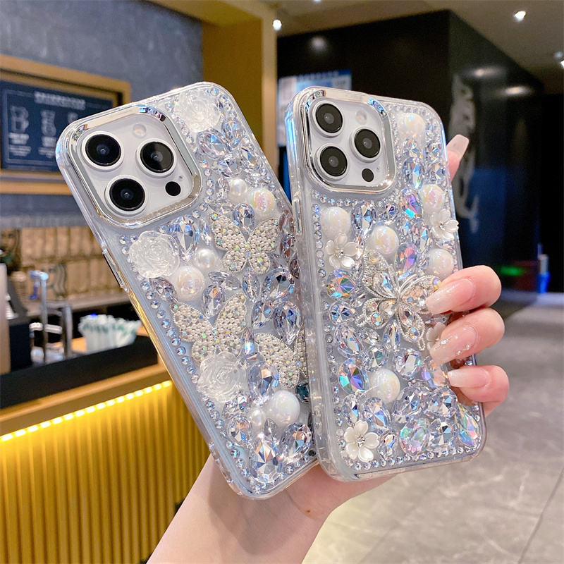 Custodia per telefono con strass 3D nuova custodia per telefono a forma di farfalla e fiore per ragazze per Huawei P70 NOVA Y73 Honor400 Lite X9C X8B X7A X6C cover