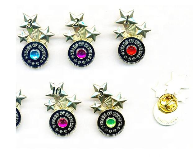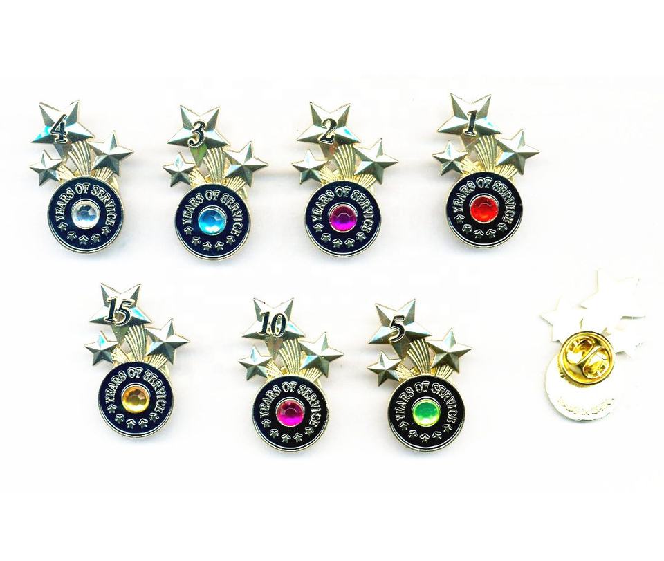 3D Star Design Metal Lapel Pin Badge With Stones for Years of Service