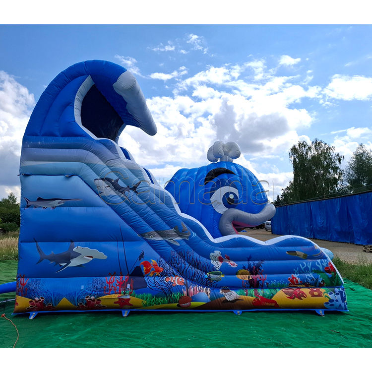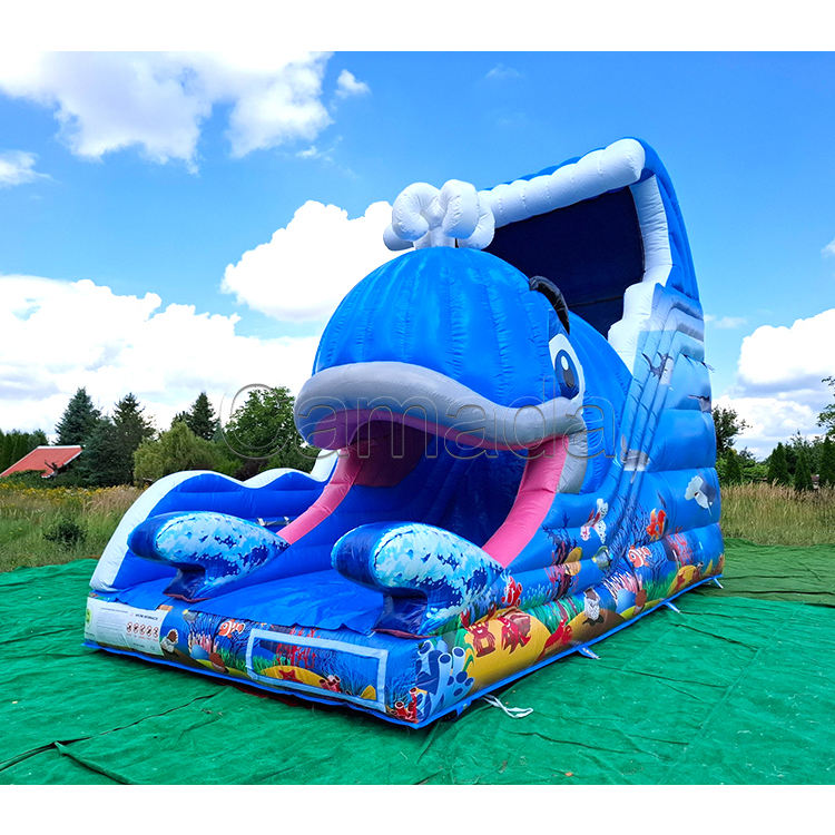 Scivolo Gigante a Tema Balena 3D, Gonfiabile Commerciale da Giardino, Grande Scivolo a Forma di Balena in PVC, Dotato di Ventilatore