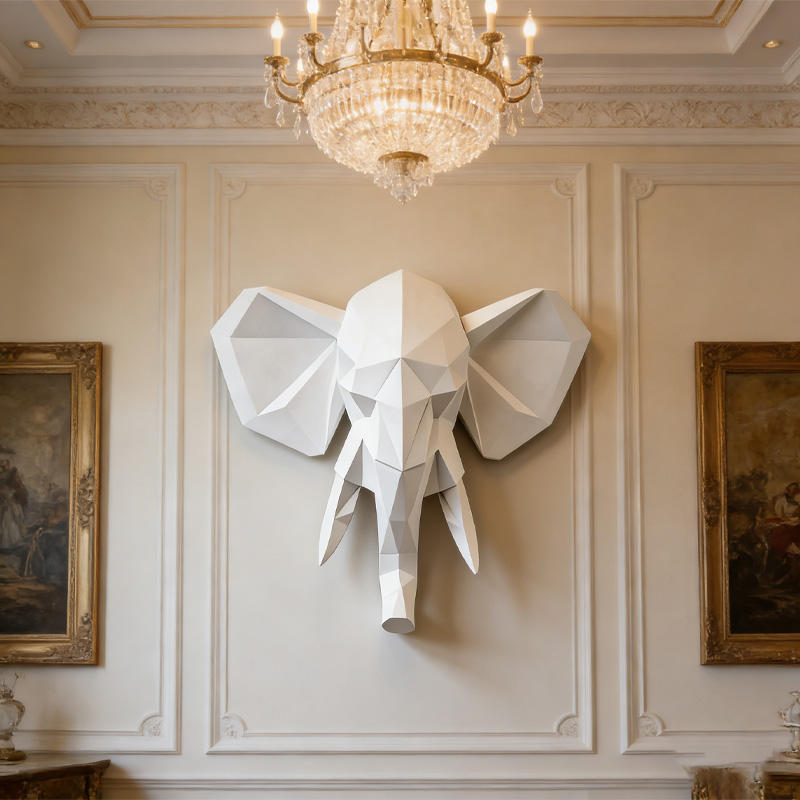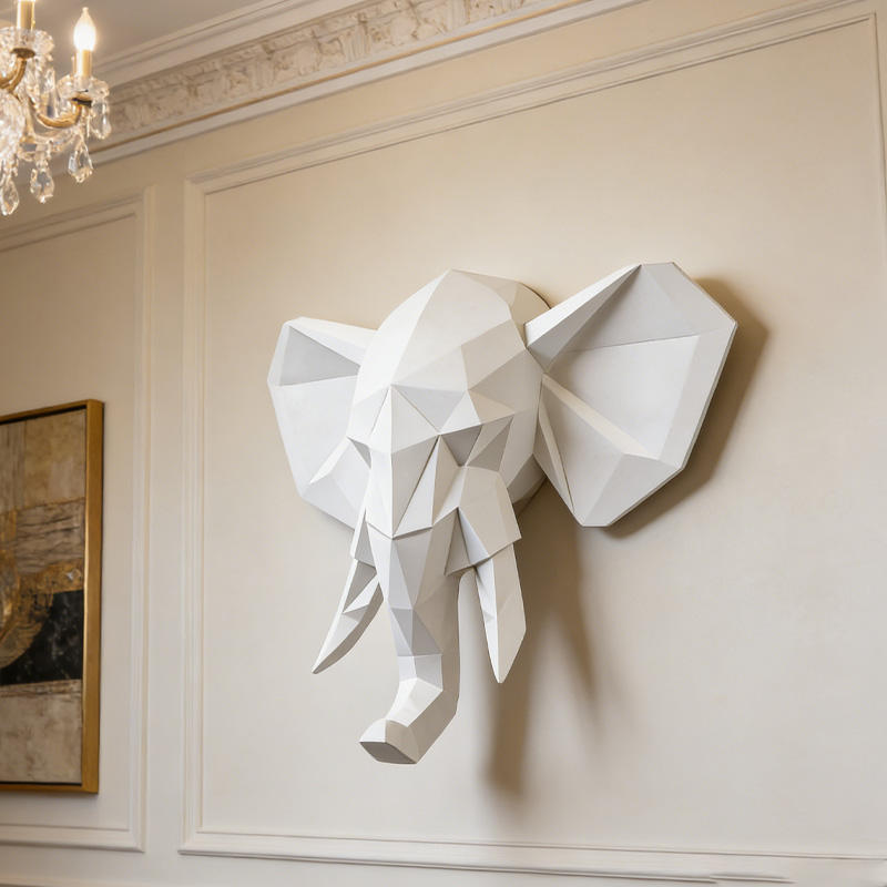 3D White Elephant Head Wall Art Decor Modern Origami Wall Mountable Resin Animal Head