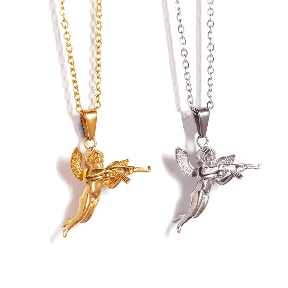 Shape\pattern:Angel Baby Of Death With Ak Gun Necklace Rope