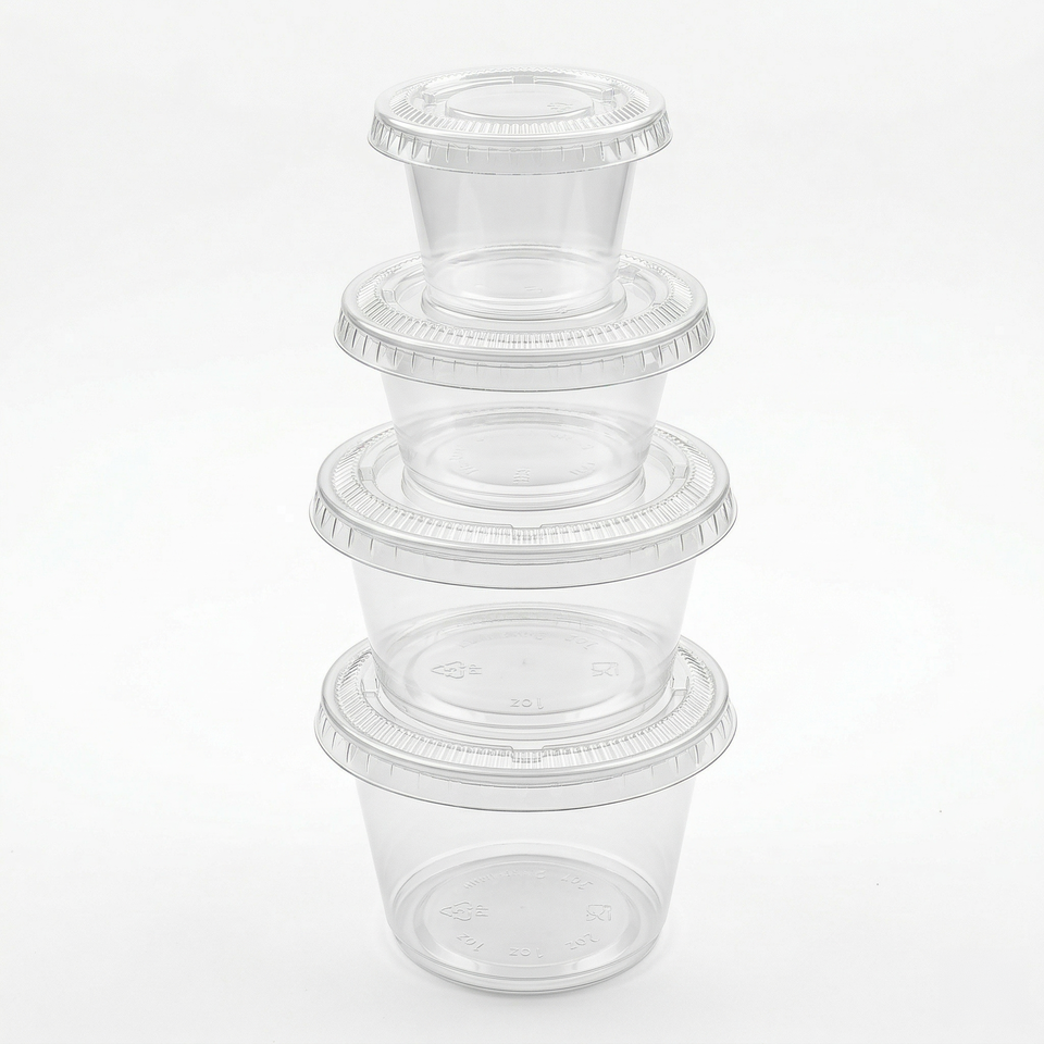 Coppette Monoporzione in Plastica PP da 3,25 oz (Senza Coperchi) Trasparenti, Piccole Mini Coppette per Condimenti, Salse, Soufflé, Gelatine, per Preparazione Pasti