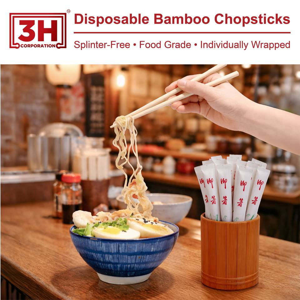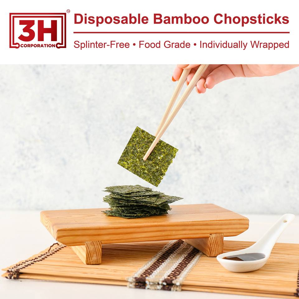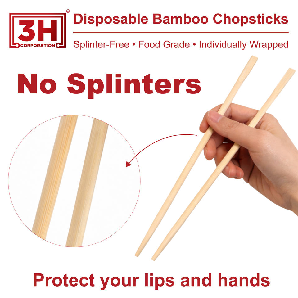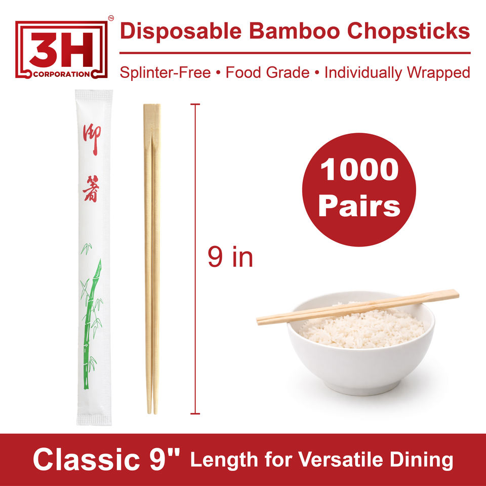 Bacchette Monouso in Bambù 3H Confezionate Singolarmente - 1000 Paia di Bacchette in Confezione Grande (23 cm) Senza Briciole