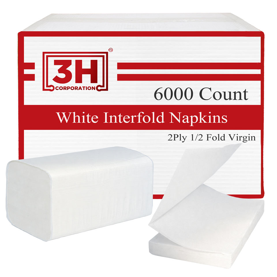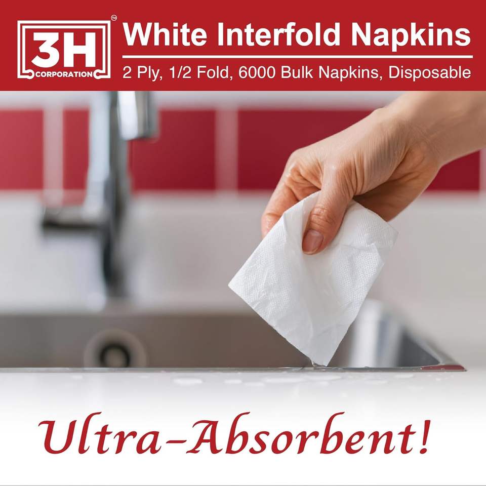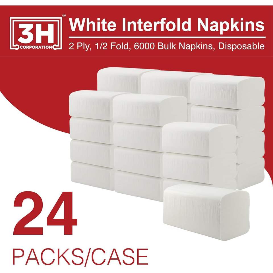 Tovaglioli di Carta Bianchi Interfold 3H, Monouso, 2 Veli, Confezione da 6000 Tovaglioli (24 Pacchi, 250/Pacco), 6.3x7.6 Pollici Sfoltati