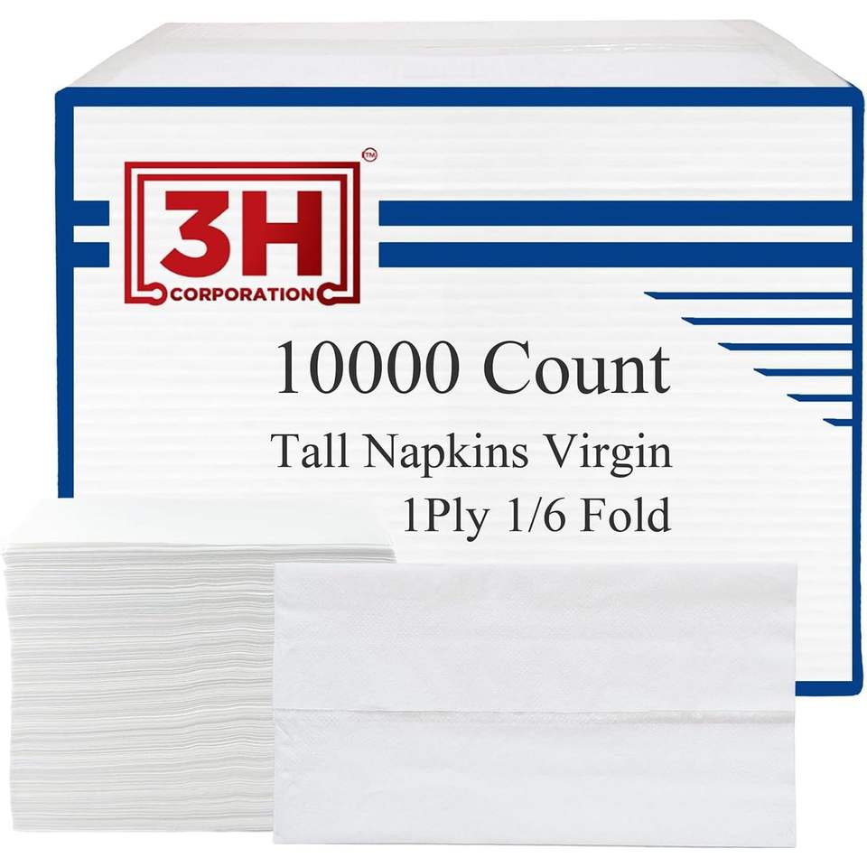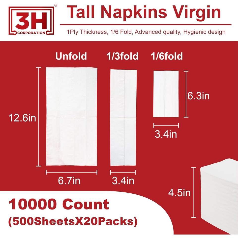 Tovaglioli di Carta Bianchi Piegati 3H, Monouso, 10000 Pezzi (20 Confezioni, 500/Confezione) 1 Velo, Piegatura 1/6, Confezione Grande per Ristoranti, Buffet, Caffetterie, Ricarica