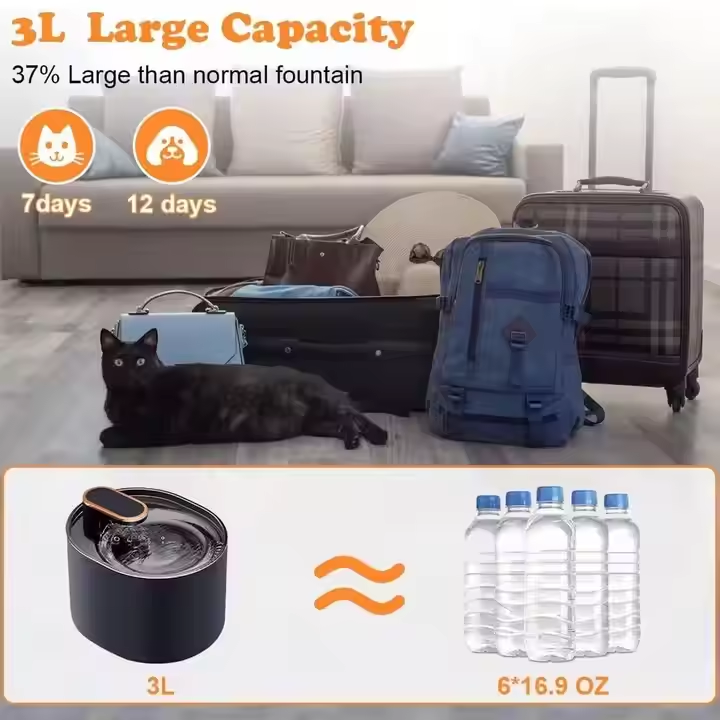 3L Electric Automatic Water Fountain Drinker for Pets Cats and Dogs with Filtration System Battery Powered Bowls