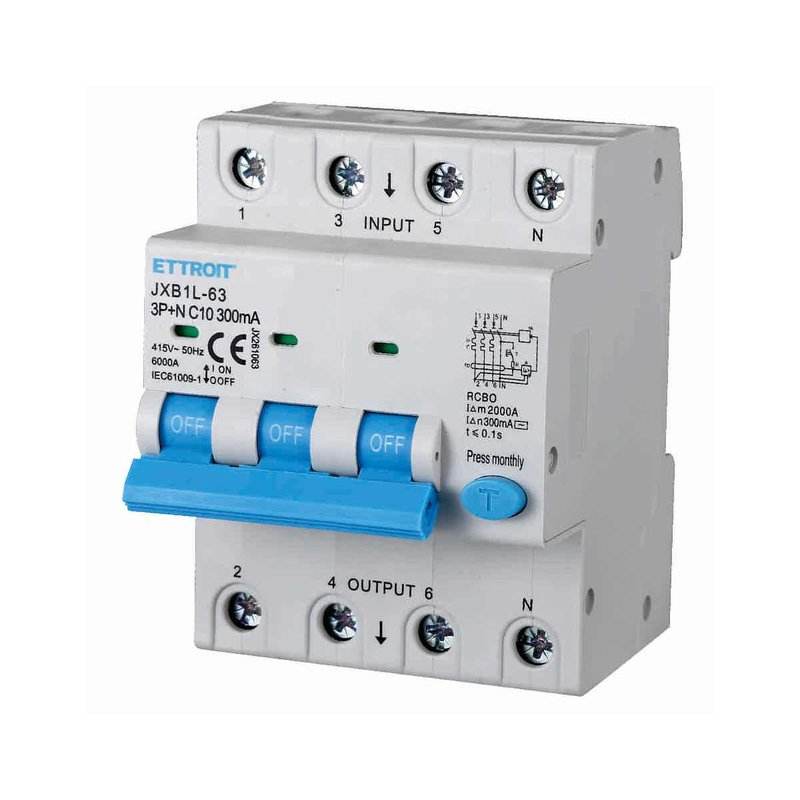 Interruttore Differenziale 3P+N 10A 6KA 300mA 380V, 4 Moduli DIN Occupati