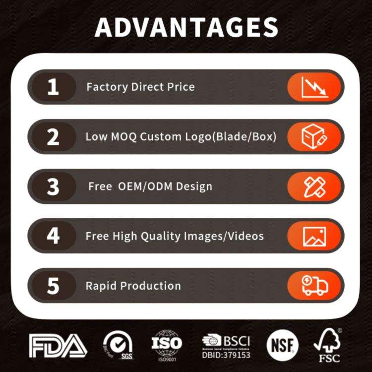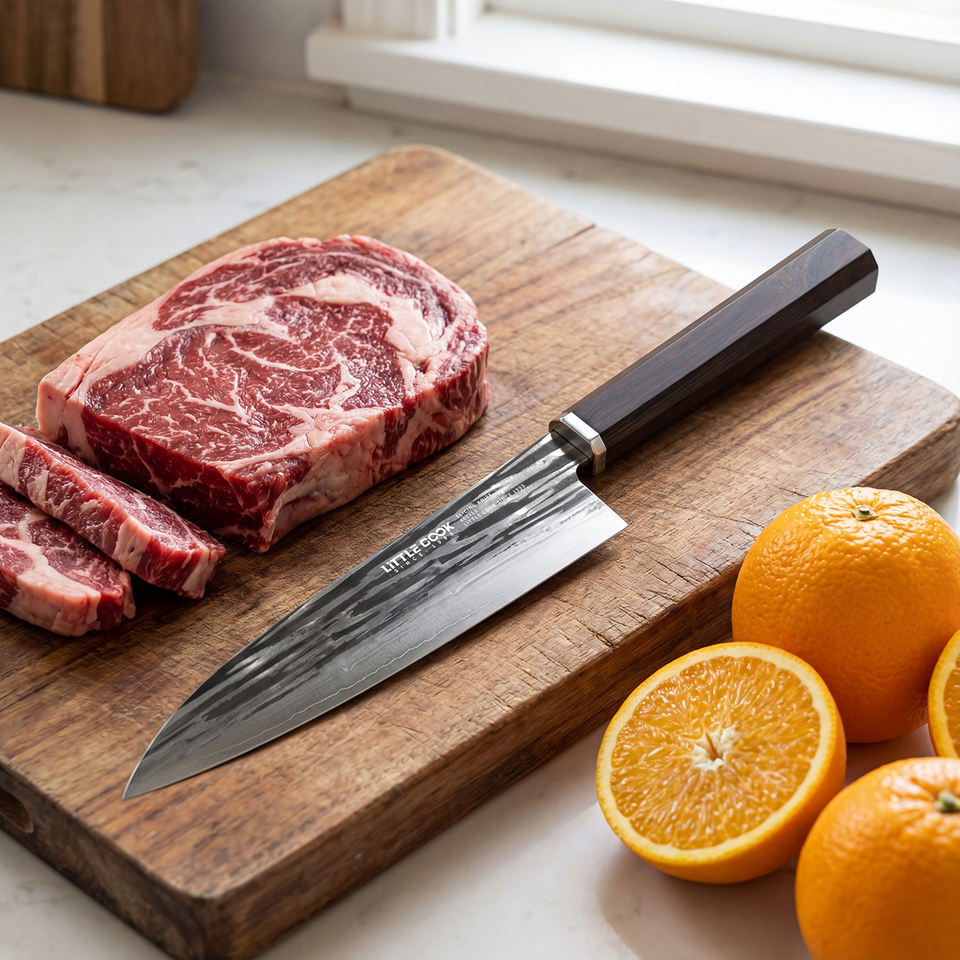 Set di 3 Coltelli da Cucina Giapponesi con Manici in Legno di Ebano Africano Ottagonale