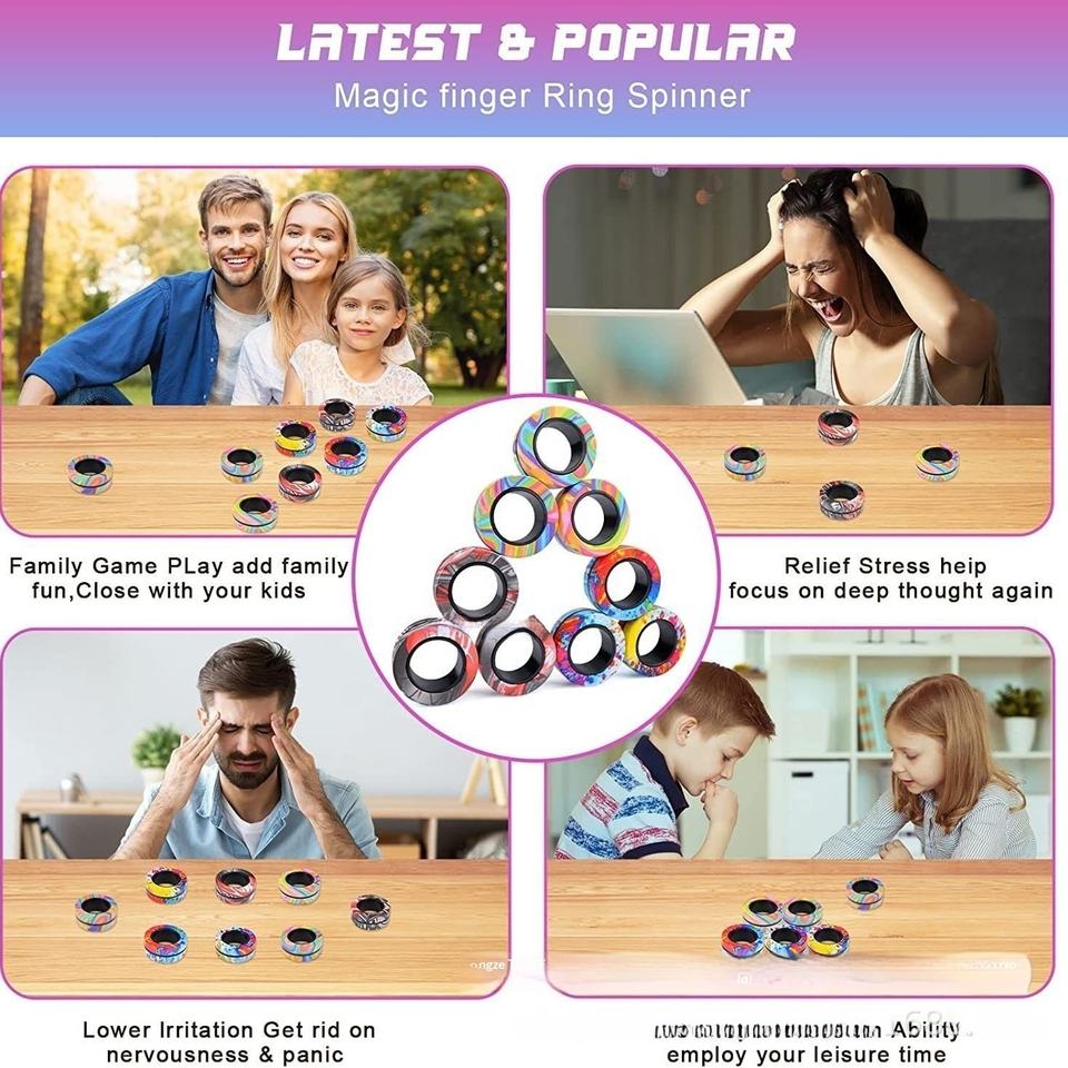 (3PCS) Magnetic Rings Fidget Toy Set, Idea ADHD Fidget Toys, Adult Fidget Magnets Spinner Rings for Anxiety Relief Therapy, Fidg