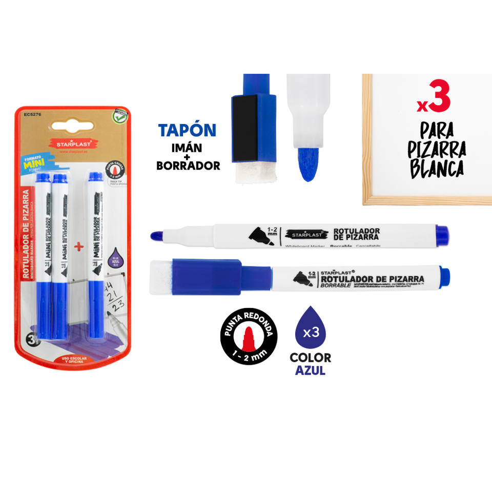 3U Whiteboard Marker Pen 3Blue Dry Erase Ink Plastic Material for School Use EN71 Certified