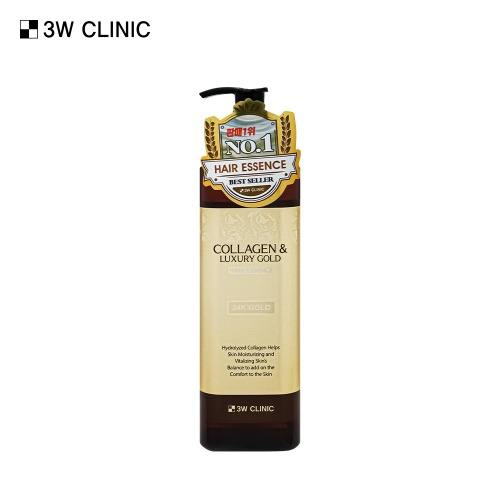 3W Clinic Luxury Gold Hair Essence 500ml Collagen Hair Oil for Damaged Hair Enhances Shine & Styling Effect