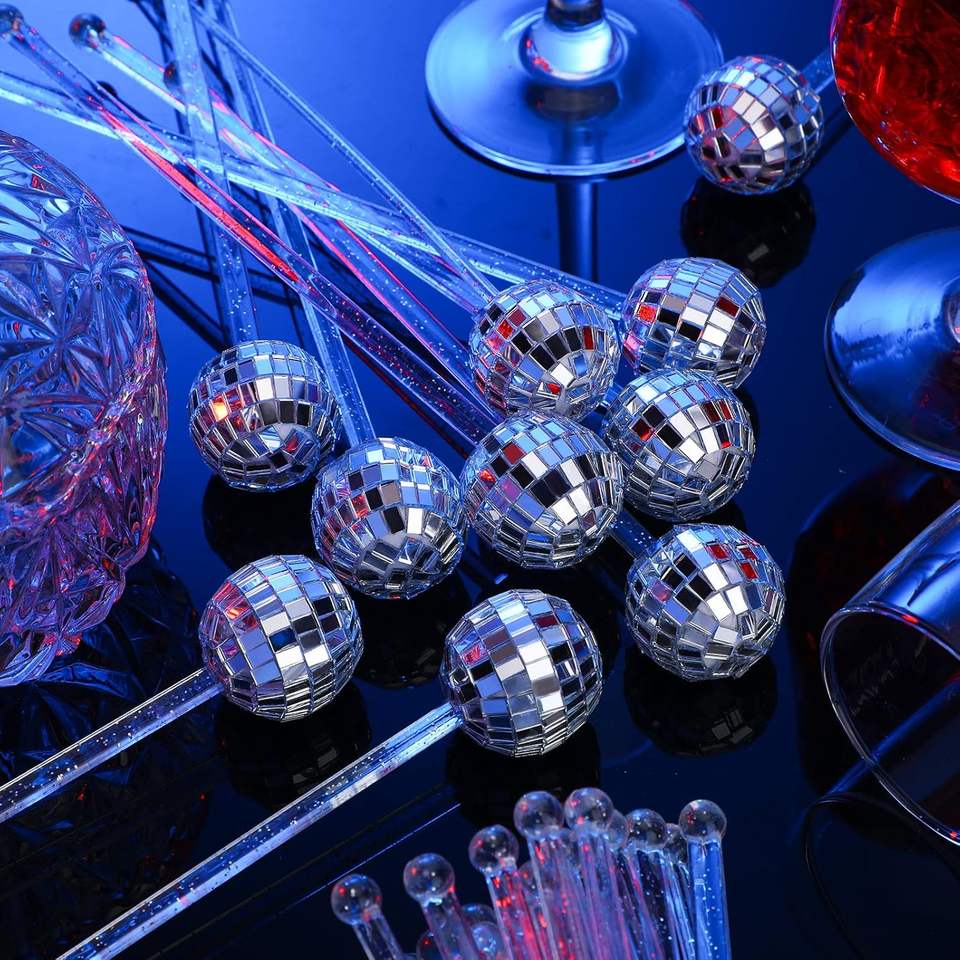 Bastoncini da Cocktail con Sfera Disco da 3cm - Agitatori Scintillanti per Bevande, Ideali per Matrimoni, Compleanni, Bar e Decorazioni per Feste